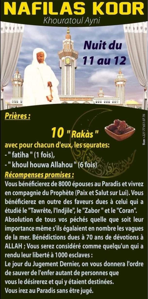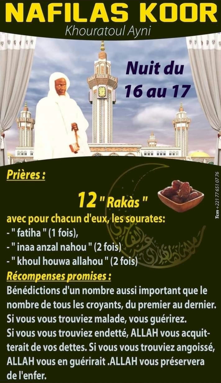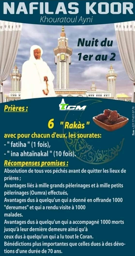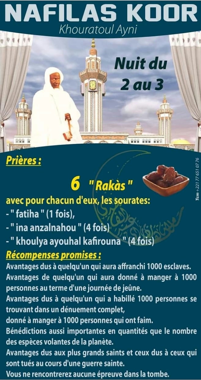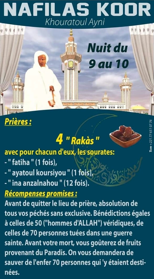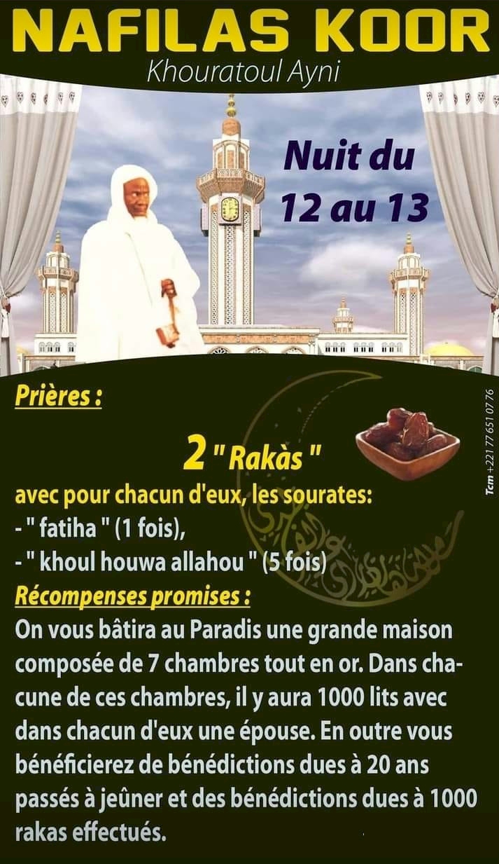 | Jeudi | 12 | 22 | Laylatoul Khadr | ||||||||||||||||||||||