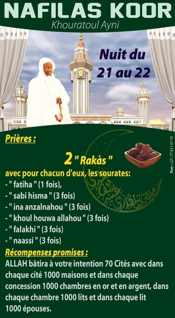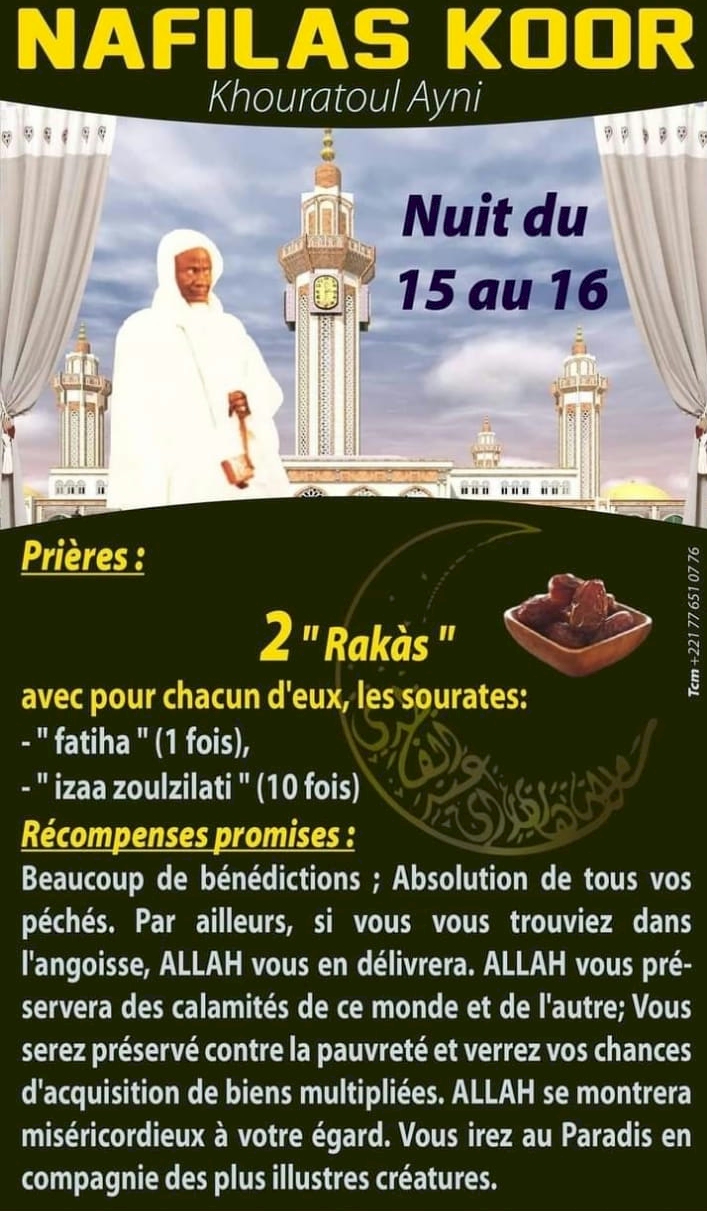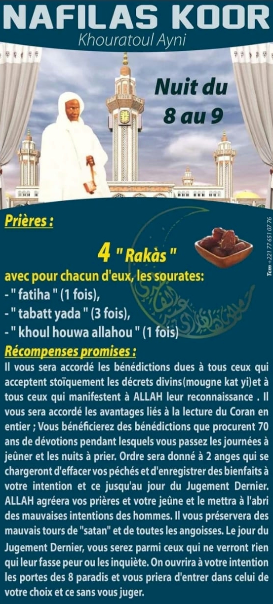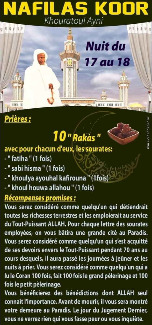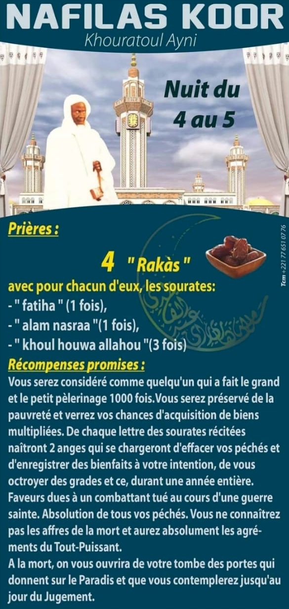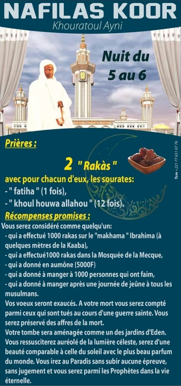| Jeudi | 12 | 22 | Laylatoul Khadr | ||||||||||||||||||||||